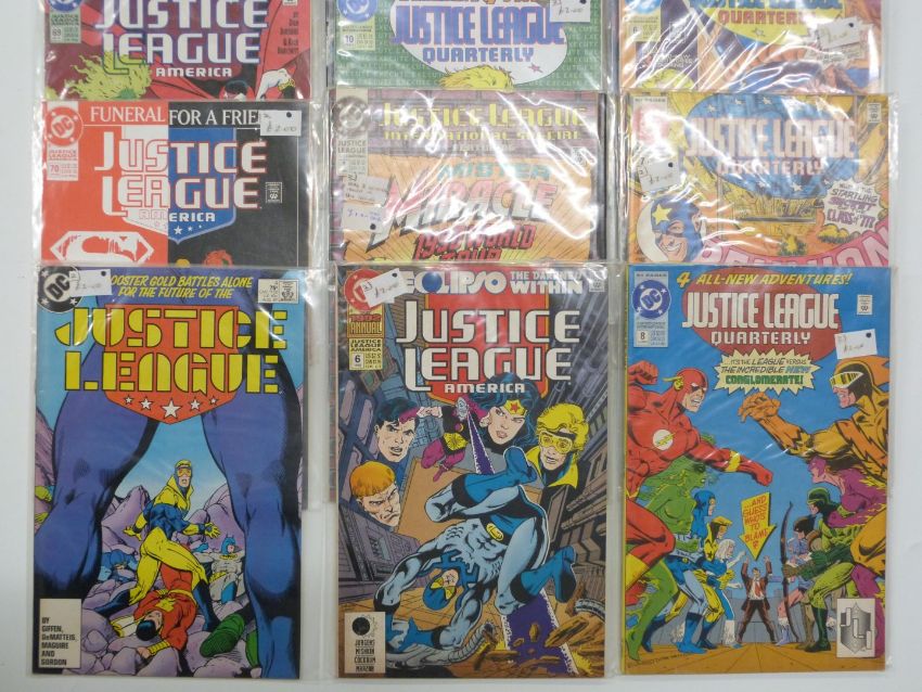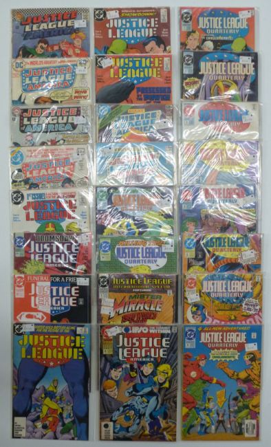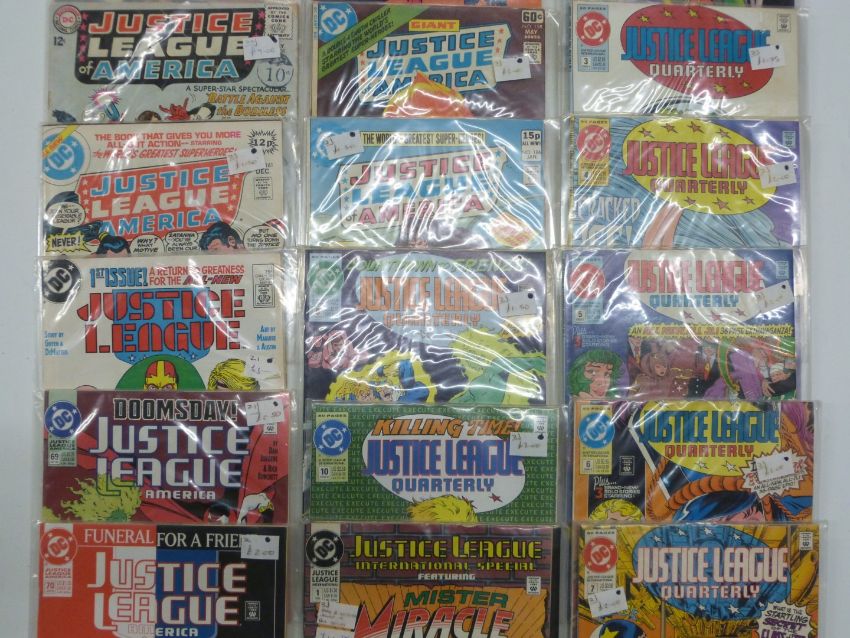 Twenty-three DC comic books including Justice League of America numbered 44 onwards.