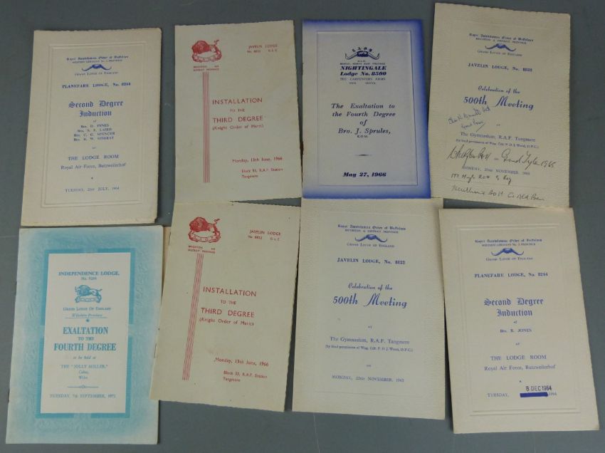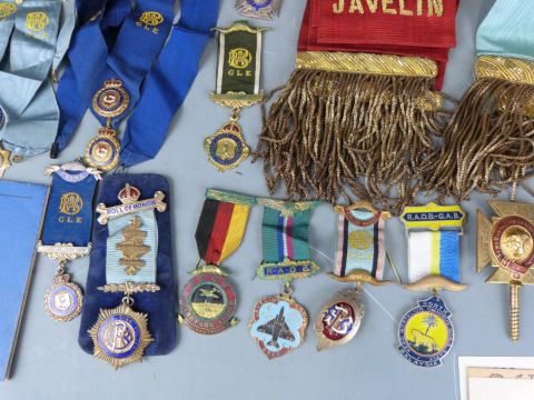 A collection of RAOB jewels, aprons and ephemera including hallmarked silver and enamel examples, Malaya/ Malaysia, German and RAF lodges