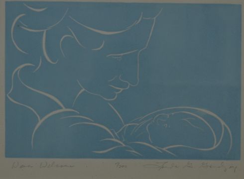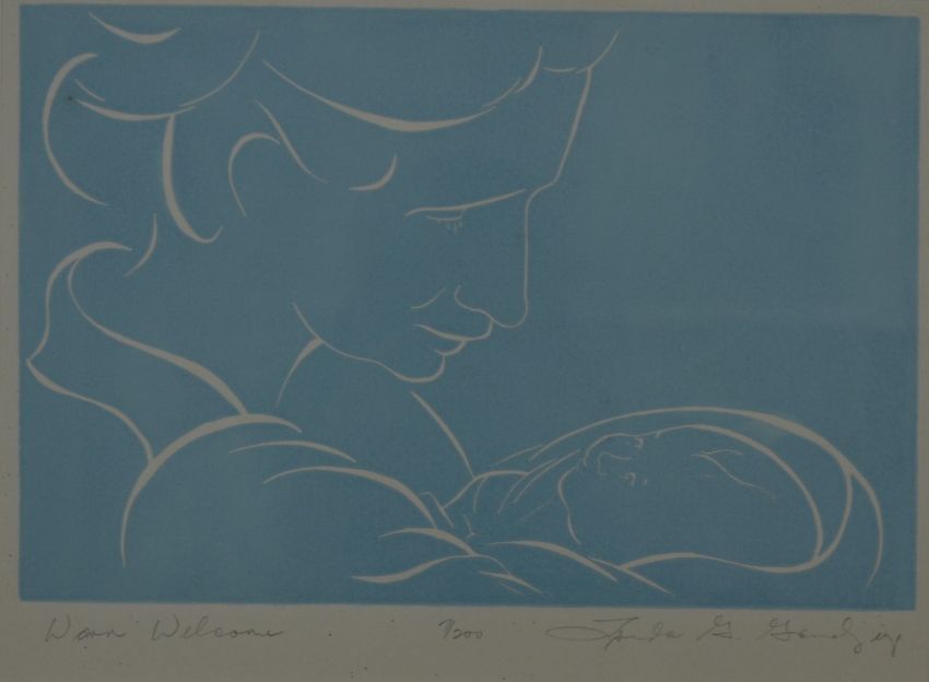 A signed limited edition 7/200 print of a mother and newborn child 'Warm Welcome'