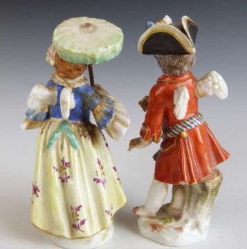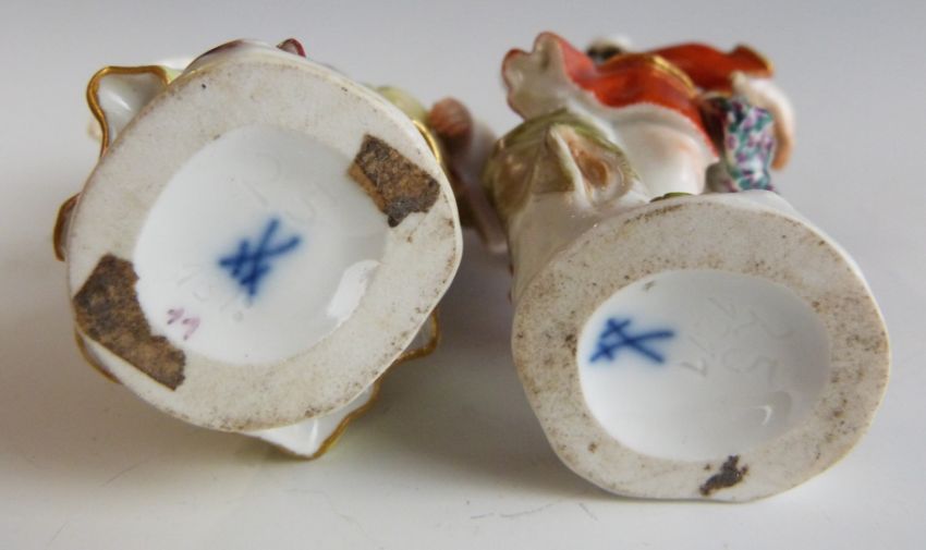 Two Meissen putti, each with blue crossed swords mark to base, H9.5cm