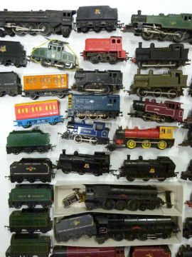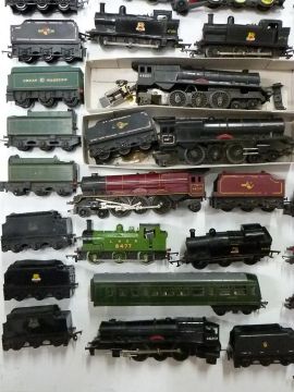 Over forty Tri-ang and Hornby 00 gauge model railway locomotives together with various loose bodies.