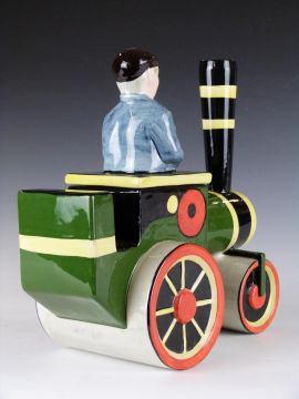 Lorna Bailey limited edition 38/100 figural Fred Dibnah steamroller teapot, H25cm