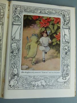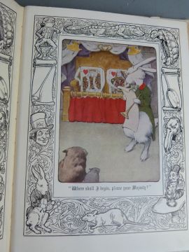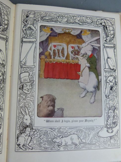 Lewis Carroll Alice's Adventures in Wonderland illustrated with 8 coloured plates by Bessie Pease and black & white illustrated border designs by Micklewright, published J. Coker 1934 bound in cloth backed boards with colour pictorial cover