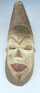 African tribal carved Punu Cap mask purchased by the vendor in Libreville, Gabon, H29cm