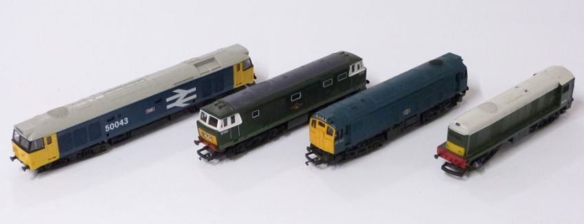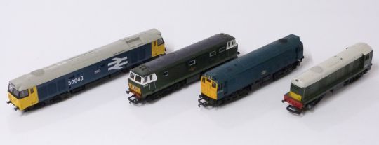 Four Hornby 00 gauge diesel locomotives Eagle, 25 247, D7097 and D8138.