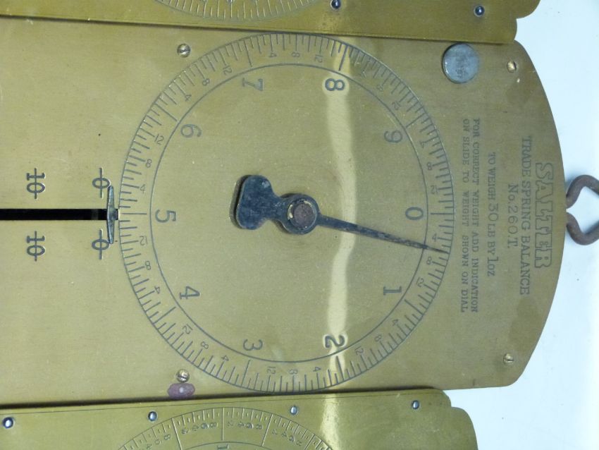 Three Salter spring balances comprising 336lb, 60T 30lb and 260T 60lb examples