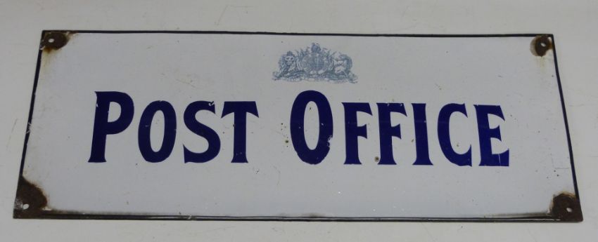 Post Office enamel sign with Royal coat of arms above, 19 x 50cm