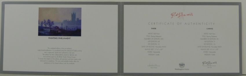 Rolf Harris (b1930) signed limited edition (600/695) print Painting Parliament, 48 x 69cm, mounted, with certificate