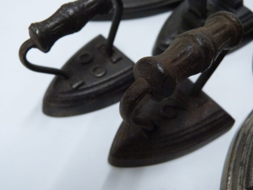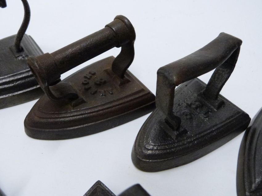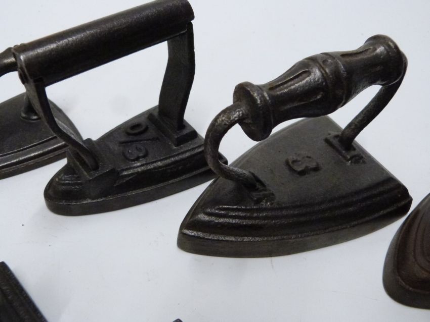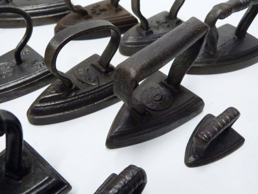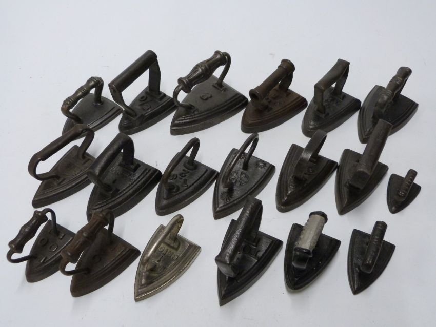 Nineteen small or miniature flat irons, AK & Sons, Toy, Bullock, Orion, J&J Siddons and Cross