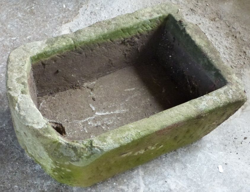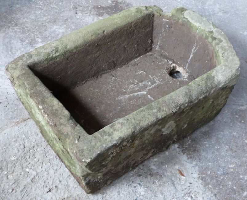 Natural stone D end trough or sink, L67 x W45 x H24cm