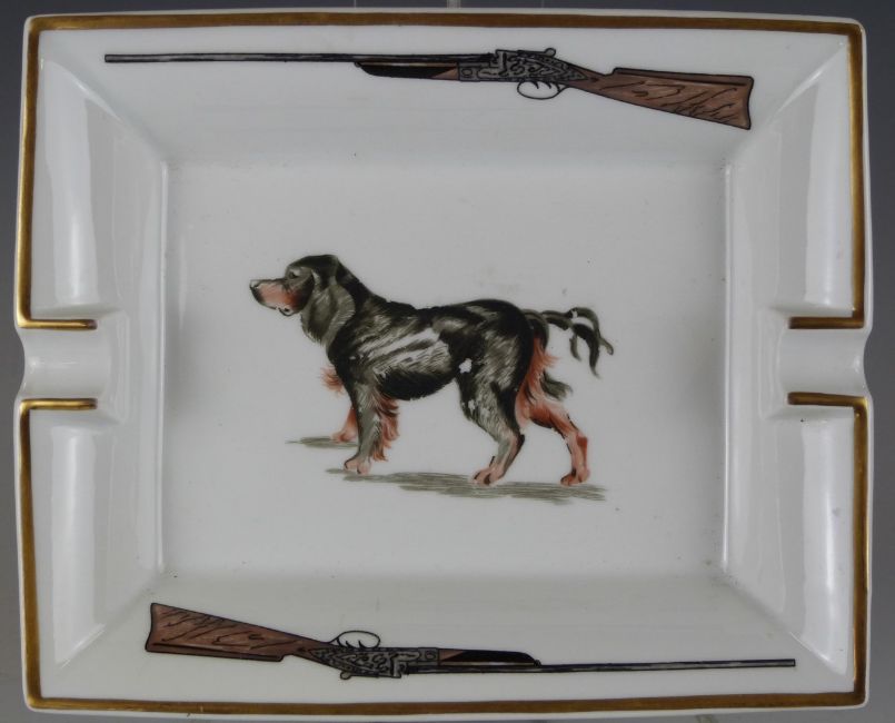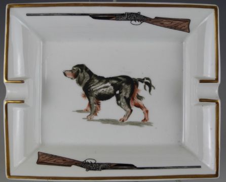Hermès porcelain cigar ashtray with Gordon Setter decoration, shooting / gundog interest, 16 x 20cm