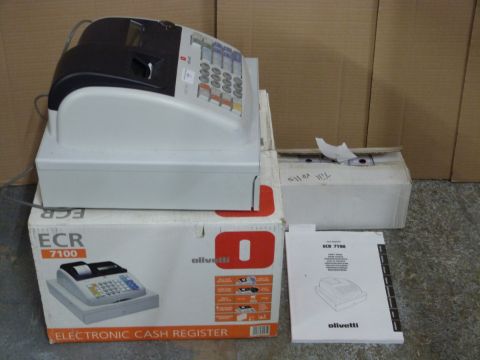 Olivetti ECR 7100 shop or cash till, in original box with till rolls
