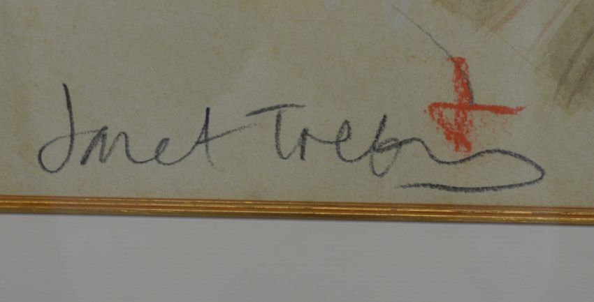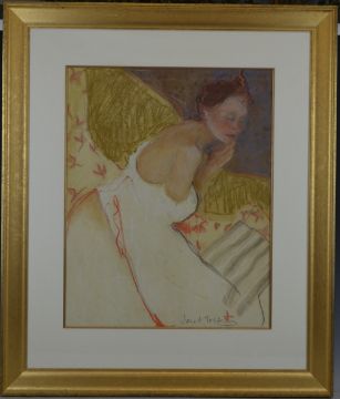 Janet Treby (b1955) pastel of a lady in white dress, signed lower right, 66 x 53cm, in gilt frame