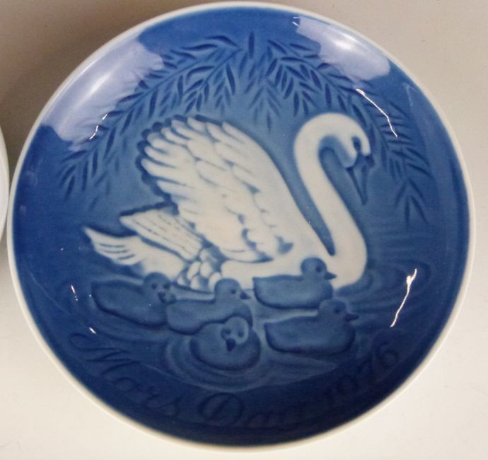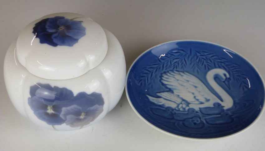 Copenhagen lobed covered pot decorated with pansies, H12cm and a Bing and Grondahl 1976 Mothers Day plate
