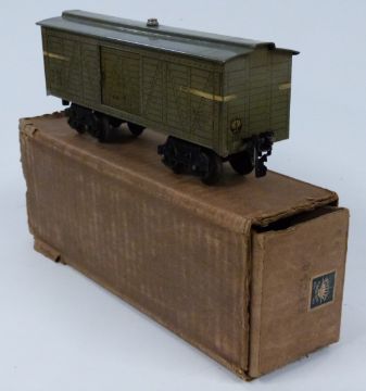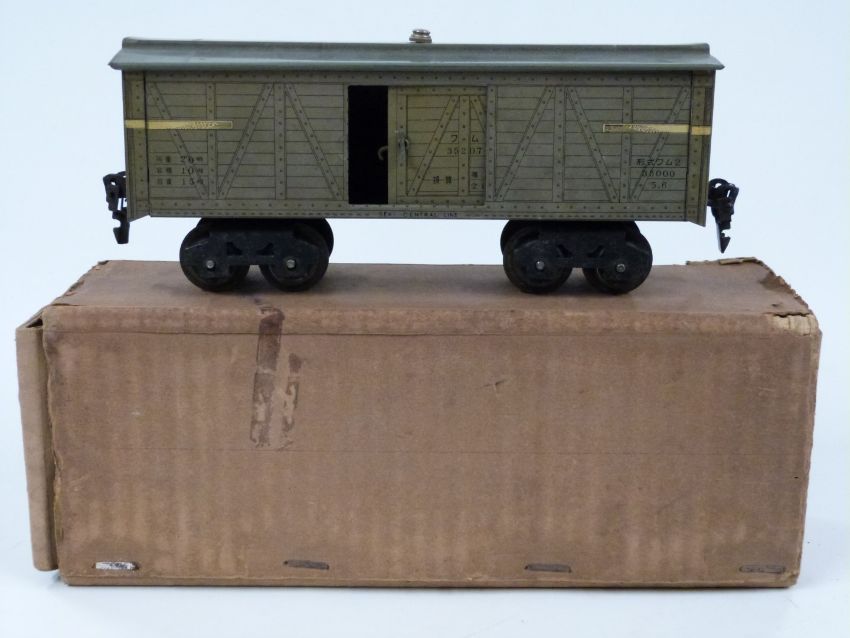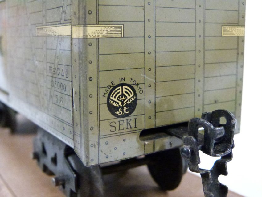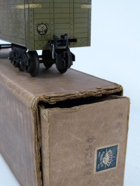 Seki Japan 0 gauge model railway Seki Central Line goods van, in period box marked Asahiya Toys.