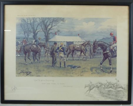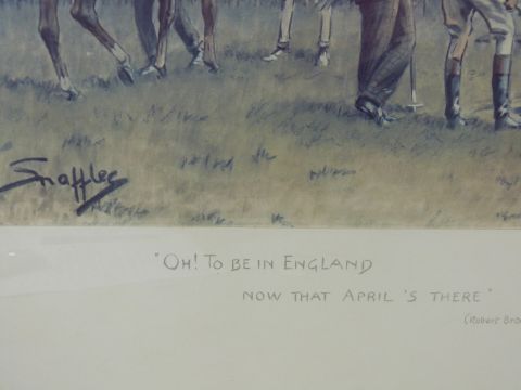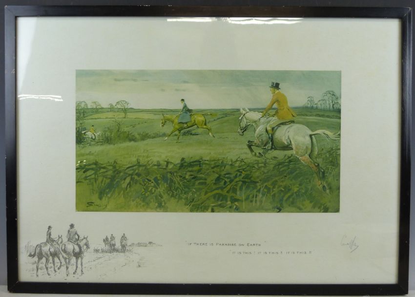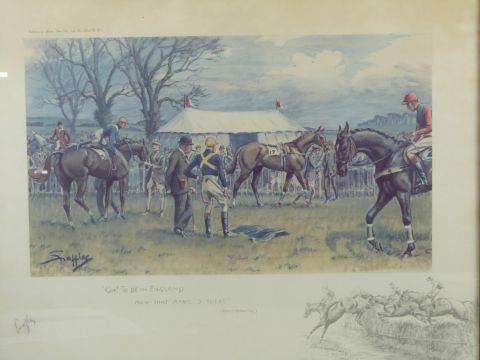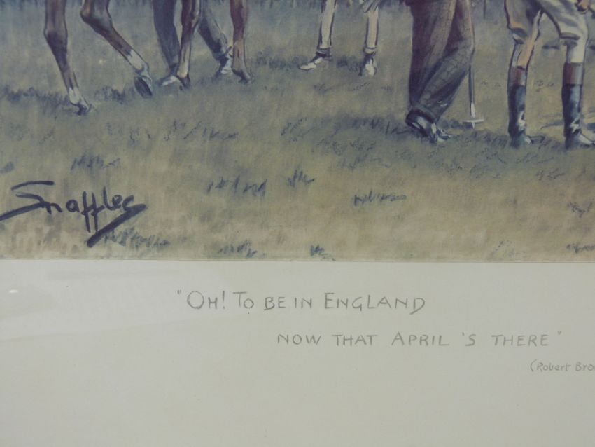 Three signed Snaffles horse racing and hunting prints, comprising 'A sight to take home and dream about', 'If there is paradise on earth it is this!, it is this!!, it is this!!!' and 'Oh to be in England', each signed in pencil and approximately 50 x 62cm