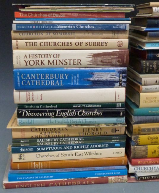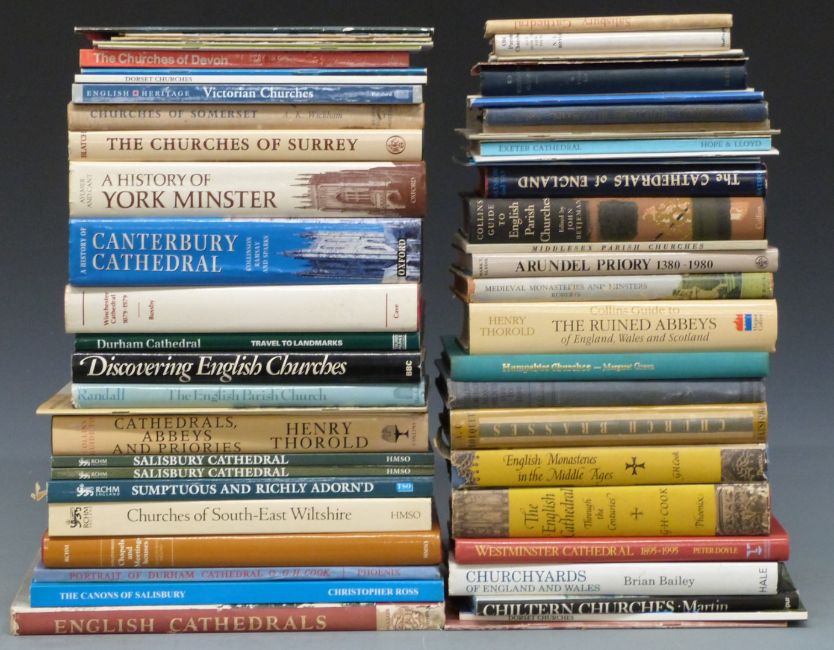 [Cathedrals & Abbeys] Winchester Cathedral 1079-1979 with foreword by Queen Elizabeth II. History of Canterbury Cathedral. Durham Cathedral. History of York Minster 1977. The English Cathedral. Salisbury Cathedral. English Parish Churches Edited by John Betjeman. The Ruined Abbeys of England, Wales and Scotland. Chapels & Meeting-houses in South West England + books on churches of Somerset. Old Oxfordshire Churches. Chiltern, Dorset, Surrey etc (approximately 50)