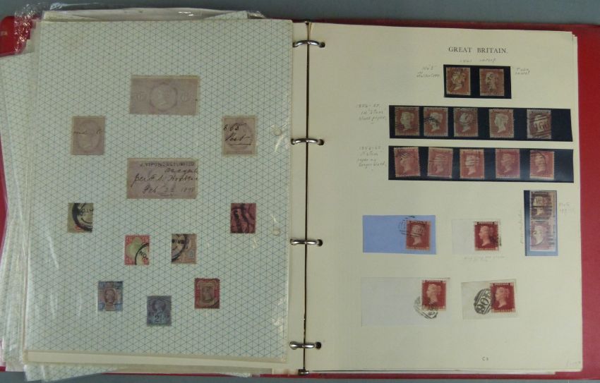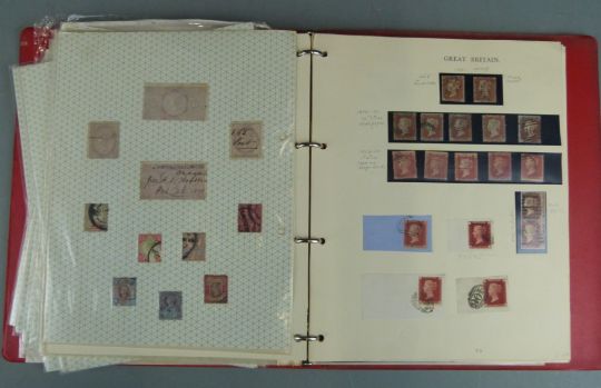A Great Britain collection 1840-1951 including 1d black x 3 (close cut), 1841 red brown with No 1 Maltese Cross cancellation, range of other early issues including 1884 9d mint, 10/- seahorse etc. Also Commonwealth stamps on loose album pages