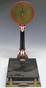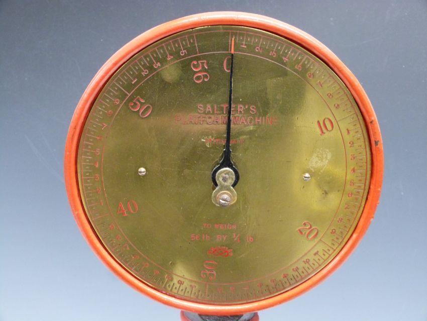 Salter's platform machine or scales, to weigh 56lb, with decorative leaf design to column, height 60cm