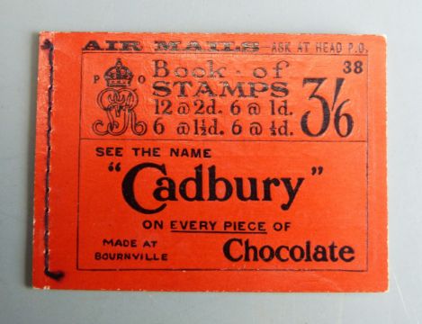 George V three and six shilling stamp booklet advertising Cadbury chocolate