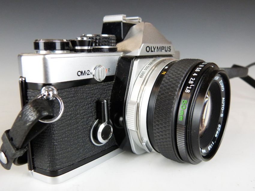 Olympus OM-2n SLR camera with 50mm 1:1.8 lens