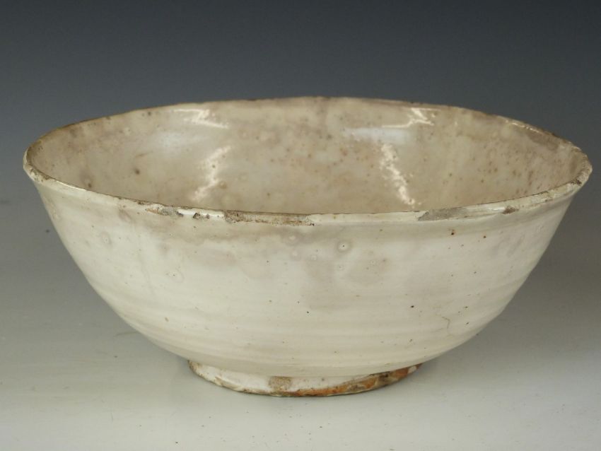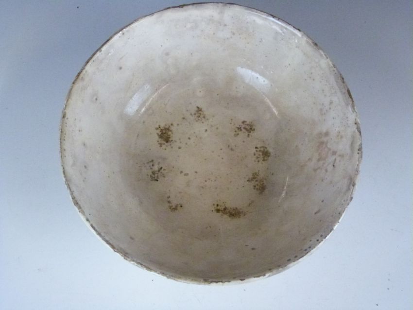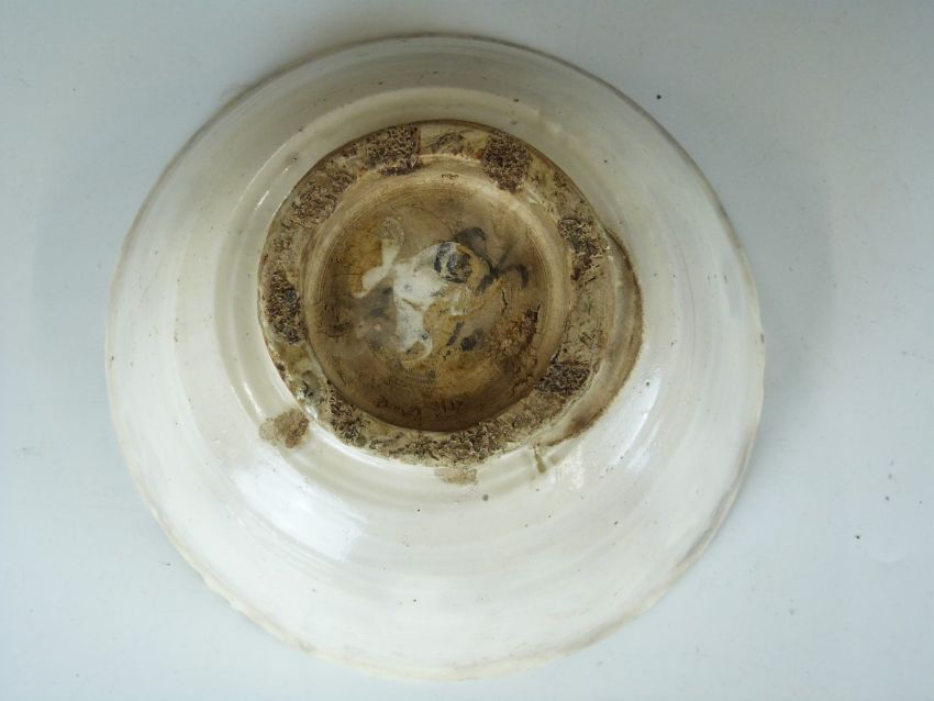 Chinese Han dynasty ribbed pedestal bowl with cream glaze