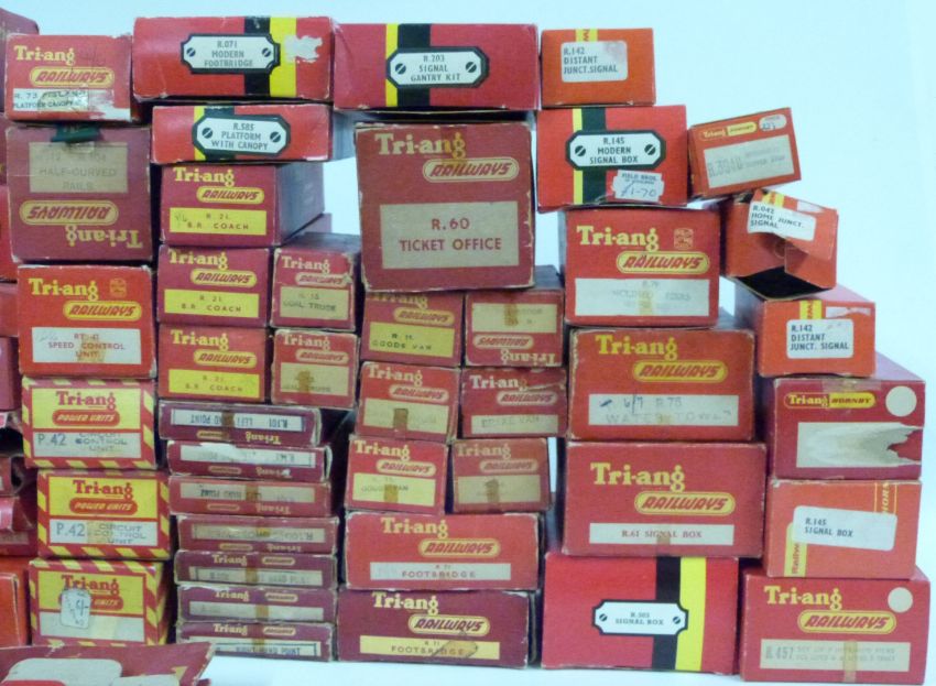 A large collection of Tri-ang and Hornby 00 gauge buildings and accessories including, turntables, level crossings, bridges, trackside furniture etc, all in boxes.