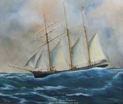 Eric Aldridge (Arlingham, Gloucestershire) two acrylic on board maritime studies, one depicting the schooner Fanny Crossfield, the other the Rhoda Mary, both signed lower left 49 x 60cm