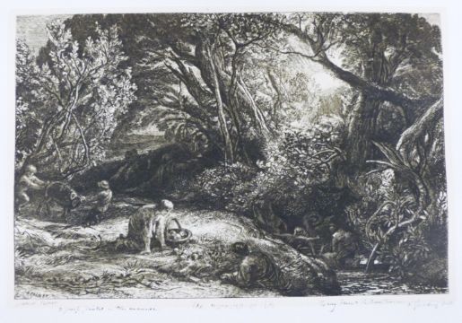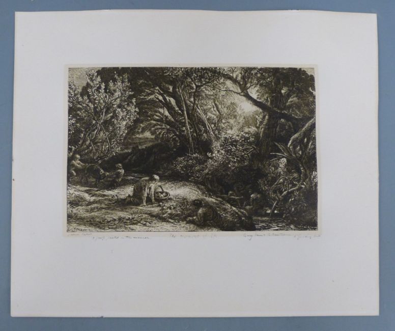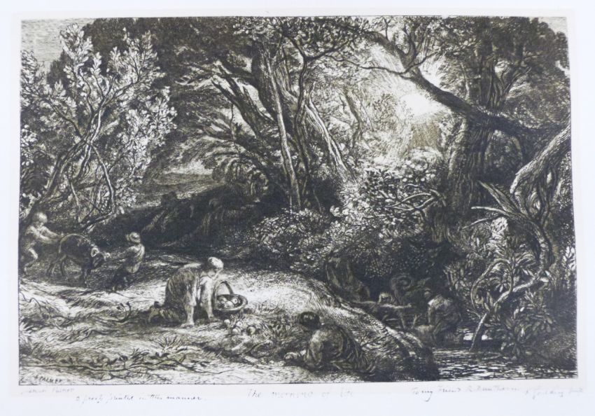 Samuel Palmer (1805-1881) signed etching, 'The Morning of Life' with dedication 'To My Friend R Dunthorne' additional script to base '2 proofs printed in this manner and F Goulding Imp.' script verso 'PL 10 (e) The Morning of Life State vii bistre inking', plate size 14 x 21cm, overall 25.5 x 30.5cm