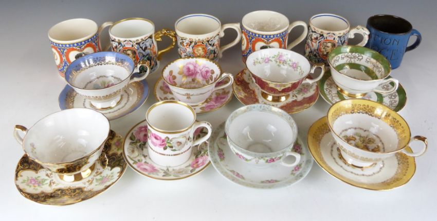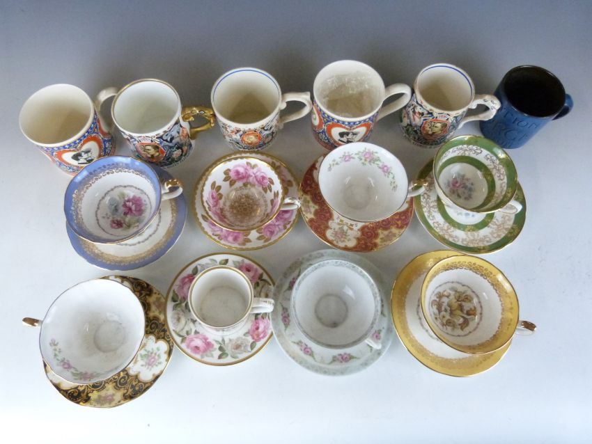 Decorative teaware including Royal Worcester inside decorated cups, Royal Grafton, Grosvenor, Dame Laura Knight commemorative ware etc