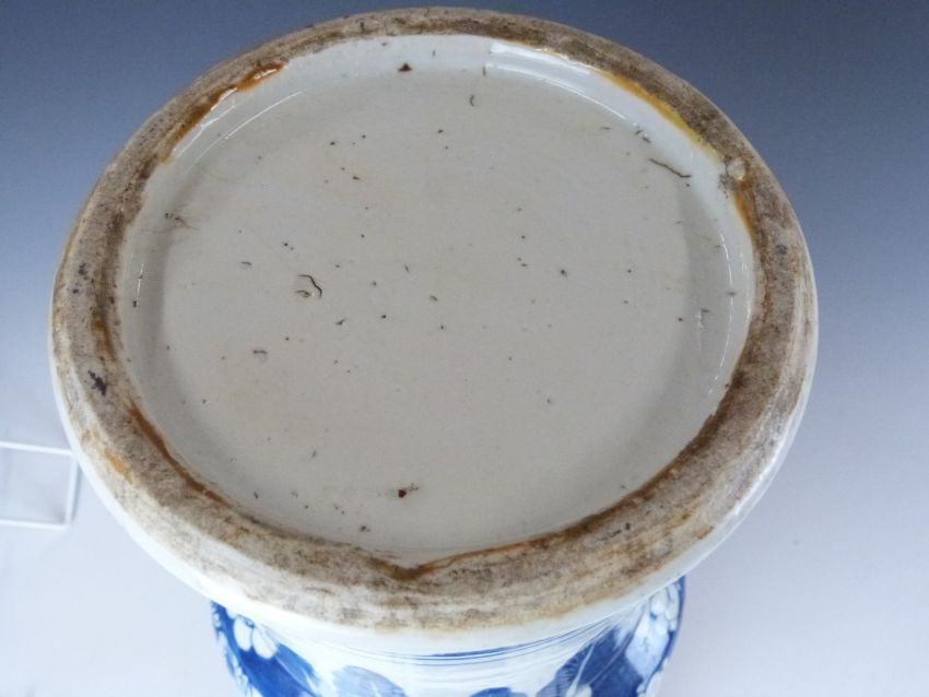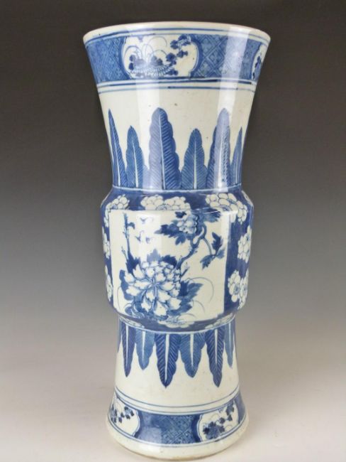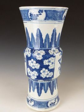 WITHDRAWN    A 19thC Chinese blue and white Gu vase with stylised acanthus leaf and prunus decoration, 46cm tall.