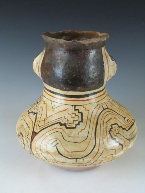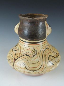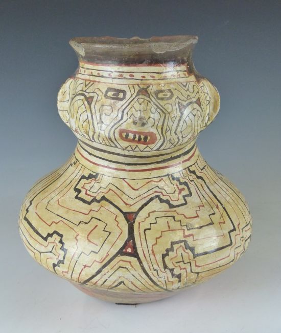Peruvian Shipibo pottery face pot, possibly Gansu province, for similar see Ronald W Longsdorf, Avery Brundage Collections and Museum For Eastern Antiquities, Stockholm, H23 diameter 20cm