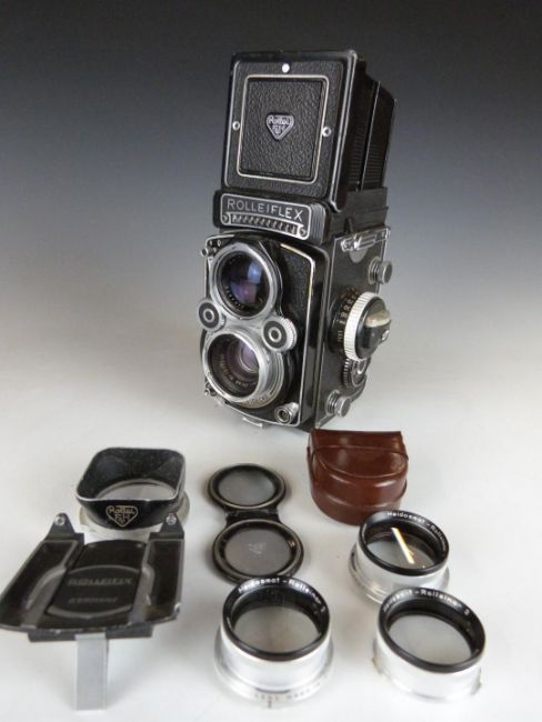 Rolleiflex 3.5F TLR camera, serial number 2212798, together with Rolleinar lenses, lens hood etc