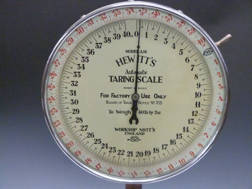 Hewitt's model A14 automatic taring scale, marked to dial for factory use only, height 75cm