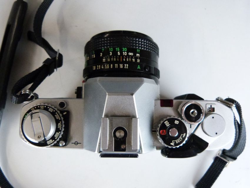 Canon AV-1 SLR camera with 50mm 1:1.8 lens and a Tokina 70-210mm 1:4-5.6 lens