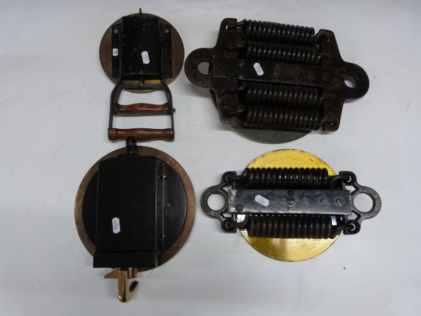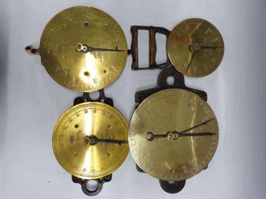 Four Salter improved dynamometers, comprising 4500lb, 100lb, 20cwt and 112lb hand grip examples