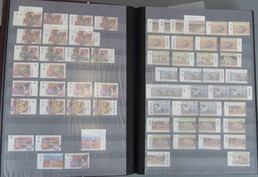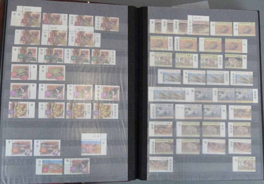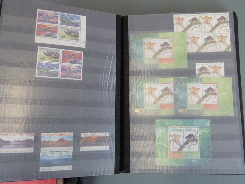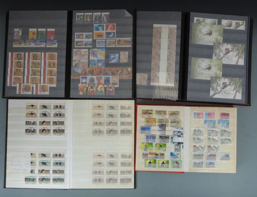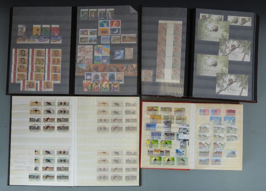 A large quantity of mint Australian stamps - singles, blocks and mini sheets, together with two stockbooks of used stamps