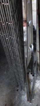 Shop fitting mesh wall, eight panels 61x123cm, eight uprights and a large quantity of fittings