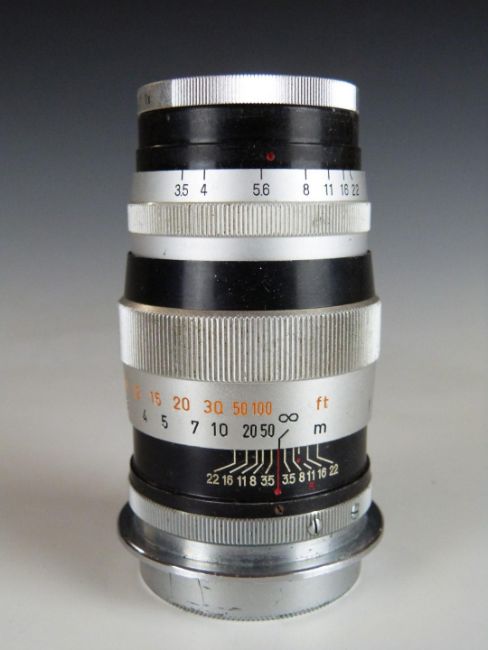 Canon 100mm f 3.5 camera lens with Leica type screw mount