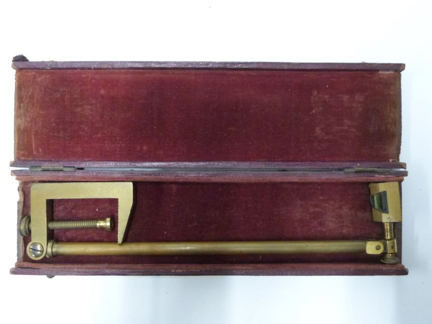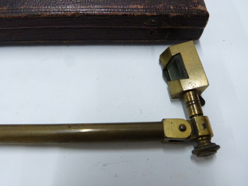 19th/20thC brass camera lucida with clamp attachment and swivel head, length of case 23cm