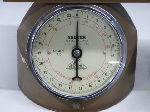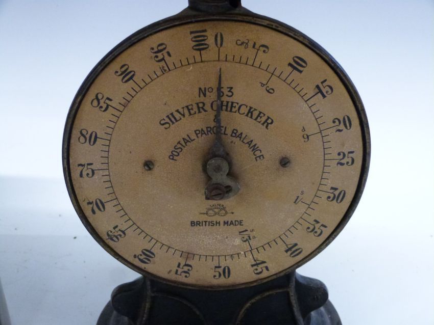 Salter No 53 silver checker and postal parcel balance together with a Salter No 40T parcel balance, both with postage rates to dials