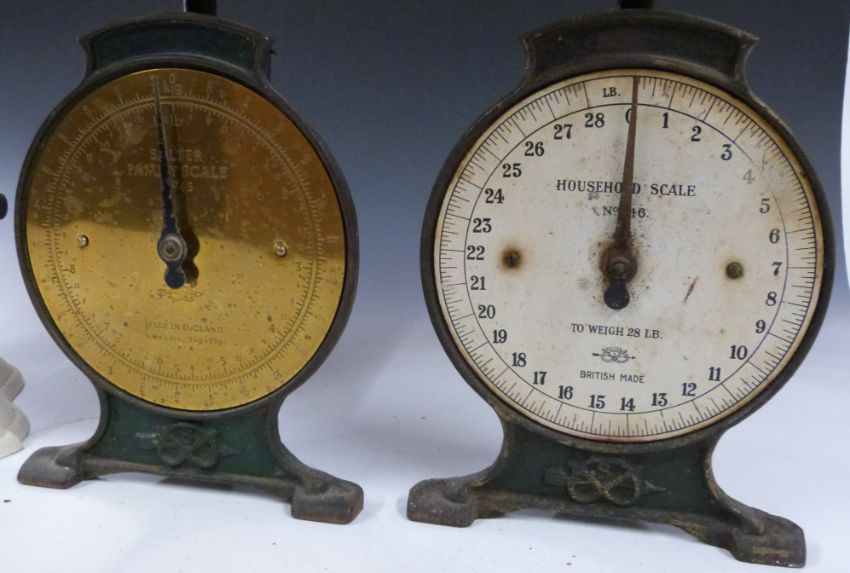 Four Salter spring balances comprising two No 51 domestic balances, No 46 household scale and a No 45 family scale