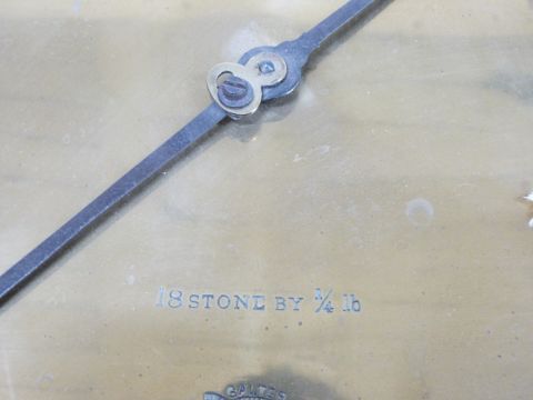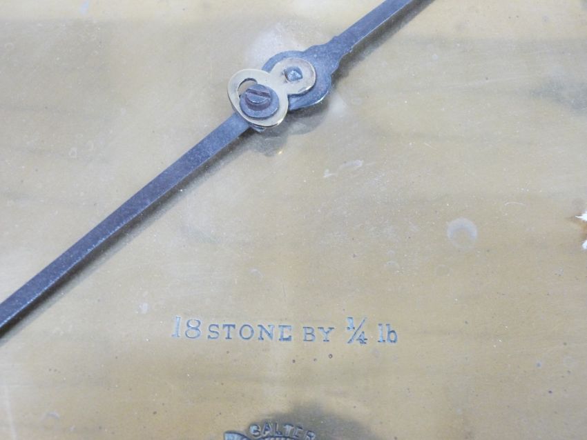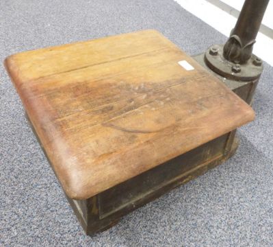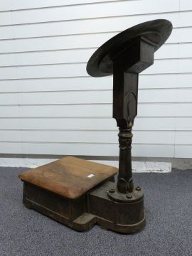 Salter's platform machine or scales with inclined brass dial and decorative cast support height 88cm