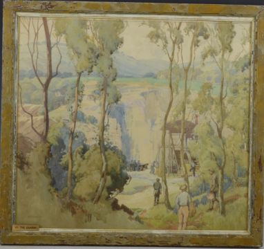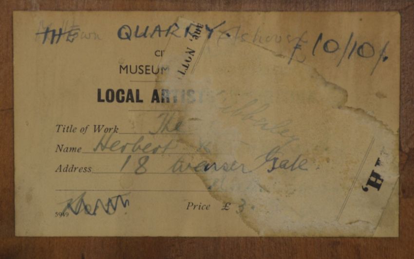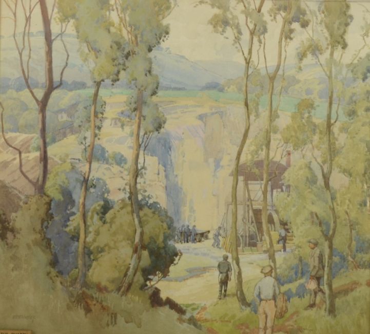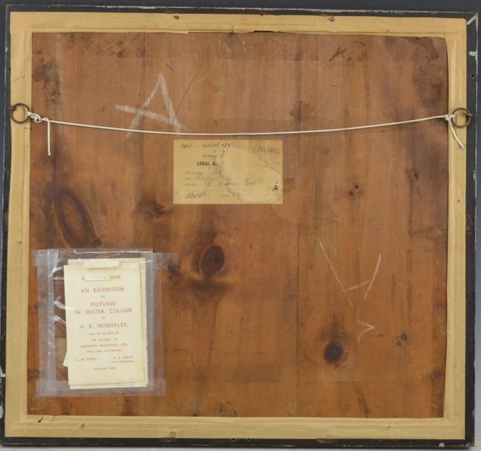 H R Wibberley (1884-1955) watercolour 'The Quarry', signed lower left, 44 x 49cm, titled to label lower left and with further label verso and letter and receipt from the artist dated 1947
