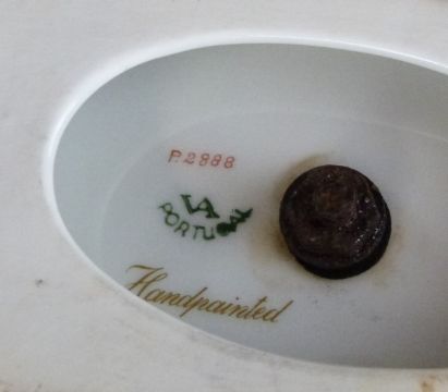Portuguese Vista Alegre porcelain pedestal bucket centrepiece, W30 H21cm