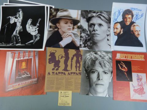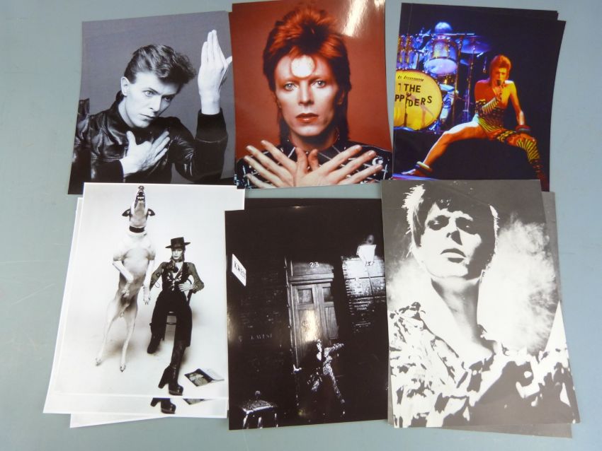 A quantity of music interest photographs and pictures including David Bowie, The Beatles and Led Zeppelin