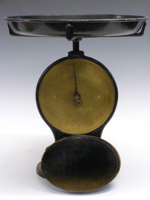 Air Ministry Salter No 50 spring balance, to weigh 28lb, also marked 21 C/328 and with hinged cover over dial, height 40.5cm