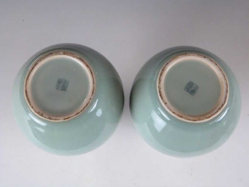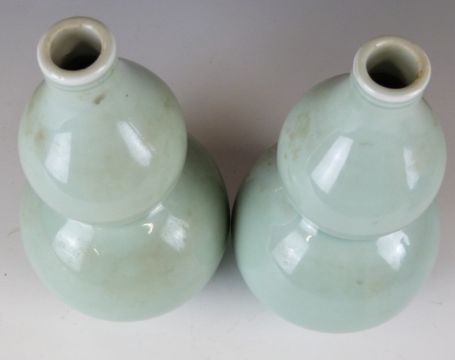 A pair of Chinese celadon glazed double gourd vases, H22cm