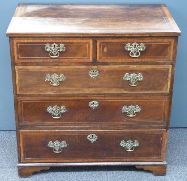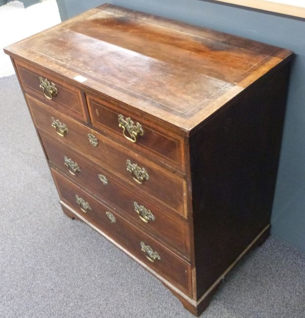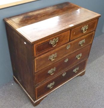 Georgian bachelor's chest of two over three drawers with crossbanded and inlaid decoration, W83 x D48 x H85cm