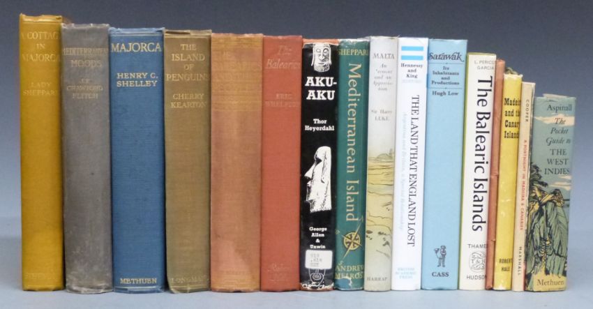 [Travel] Majorca by Henry Shelley 1926. The Balearics by Whelpton 1953. The Balearics & Their People with maps & illustrations 1927. Madeira. Mediterranean Island. The Island of Penguins 1930, Sarawak. The Secret of Easter Island 1958. Aspinall The West Indies. An Album of Gibraltar Views etc  (16)